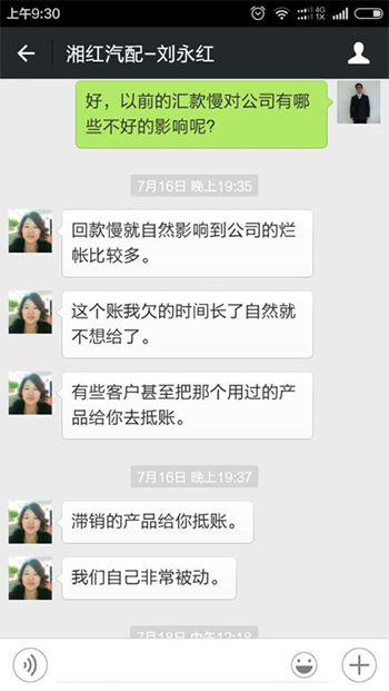 2、回款难让湘红汽配吃了许多哑巴亏。做网络营销之前,湘红汽配回款慢,一般的老客户1个月回一次款,个别客户拖欠很久,回款慢导致烂帐较多。有些客户欠账时间长了就不想给了。个别奇葩客户甚至想用二手产品、滞销产品来抵账。发货给客户通过物流公司代收货款也导致回款难,物流公司代收了货款,有主动权,想什么时候给就什么时候给,每次去收货款都得排长队,特别被动。