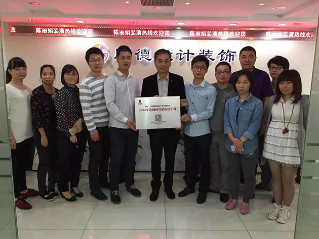 杨总带全体刚德员工接受牛商网“2015年网络营销标杆牛商”授牌