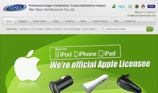 深圳市美顺和电子有限公司成立于2002年,现有职员工700多人,年销售额达1.5亿人民币,位于广东省深圳市宝安区观澜镇,10年来一直致力手机.Apple Mobile Device,智能手机,平板电脑等一系列电子产品的旅行充电器,车载充电器.移动电源等配件的研发,生产,销售.目前公司的大部分产品已获得意大利,德国,法国,英国,美国,加拿大,澳大利亚,西班牙,荷兰,丹麦,俄罗斯,日本等世界客户的青睐和认可.公司于2010年通过ISO9001认证,产品亦通过了一系列的国际权威认证:CE,EMC,LVD,ROHS,REACH,PAHS,GS,N,D,S,FI,E-MARK.Etc.公司多年来积极参加各种国际展览会,如CES,CEBIT,IFA,HKELECTRONICSFAIR,andCHINASOURCINGFAIR..