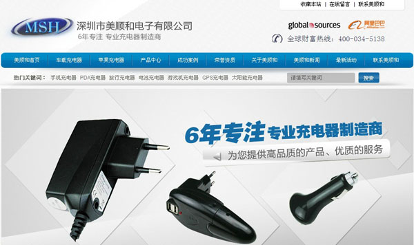深圳市美顺和电子有限公司成立于2006年,位于广东省深圳市宝安区观澜镇,6年来一直致力手机.AppleMobileDevice,智能手机,平板电脑等一系列电子产品的旅行充电器,车载充电器.移动电源等配件的研发,生产,销售.目前公司的大部分产品已获得意大利,德国,法国,英国,美国,加拿大,澳大利亚,西班牙,荷兰,丹麦,俄罗斯,日本等世界客户的青睐和认可.公司于2010年通过ISO9001认证,产品亦通过了一系列的国际权威认证:CE,EMC,LVD,ROHS,REACH,PAHS,GS,N,D,S,FI,E-MARK.Etc.公司多年来积极参加各种国际展览会,如CES,CEBIT,IFA,HKELECTRONICSFAIR,andCHINASOURCINGFAIR..