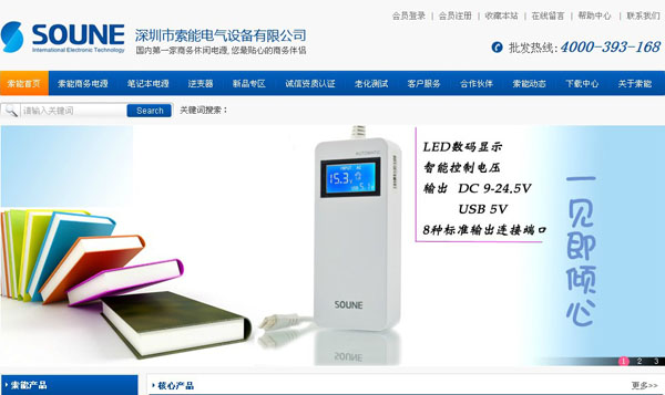 深圳市索能电气设备有限公司是笔记本多功能适配器、笔记本电源、笔记本适配器、双用电源、车载逆变器、车载电源、点烟器、多功能移动电池等产品专业生产加工的有限责任公司。深圳市索能电气设备有限公司拥有完整、科学的质量管理体系。深圳市索能电气设备有限公司的诚信、实力和产品质量获得业界的认可。欢迎各界朋友莅临深圳市索能电气设备有限公司参观、指导和业务洽谈。